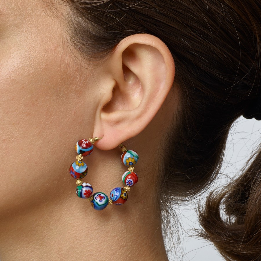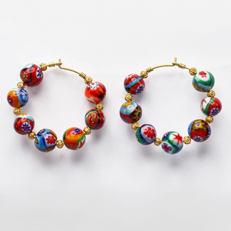 Brinco em ouro amarelo e contas venezianas.