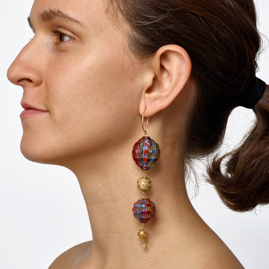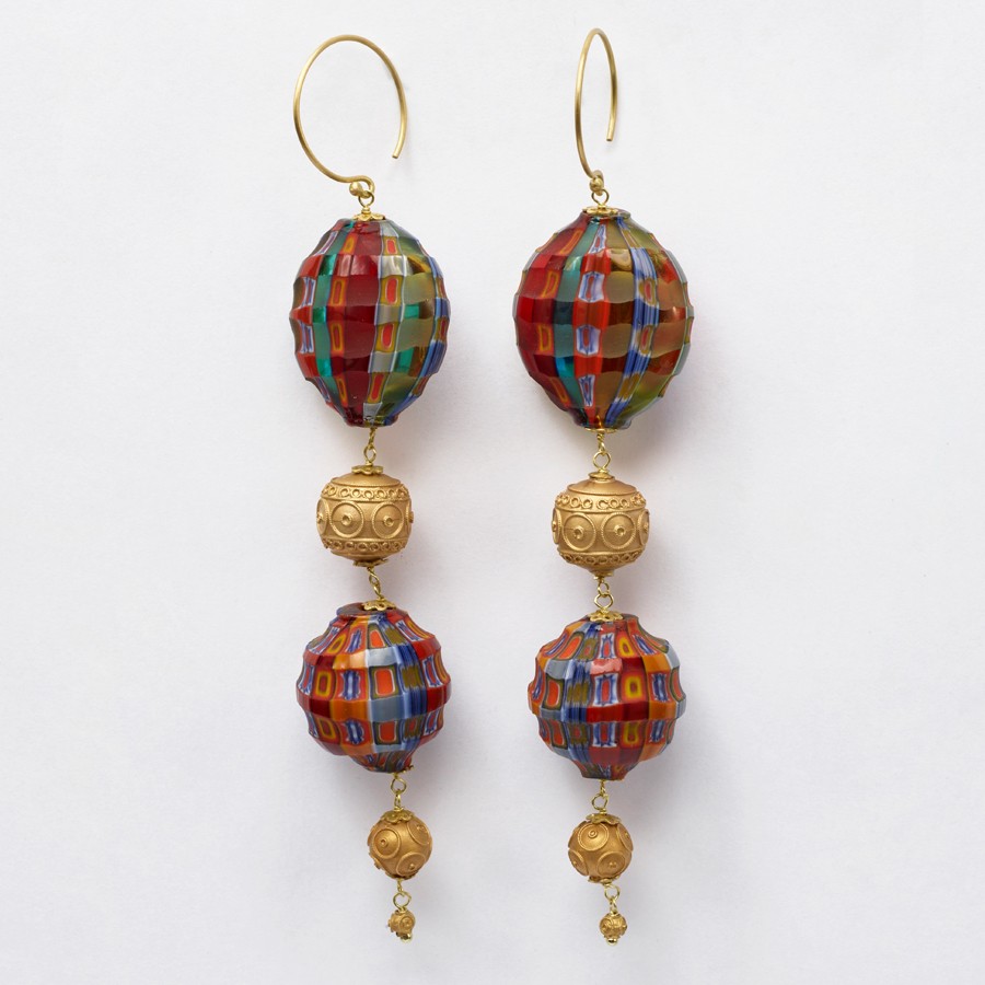Brinco em ouro amarelo e contas venezianas.