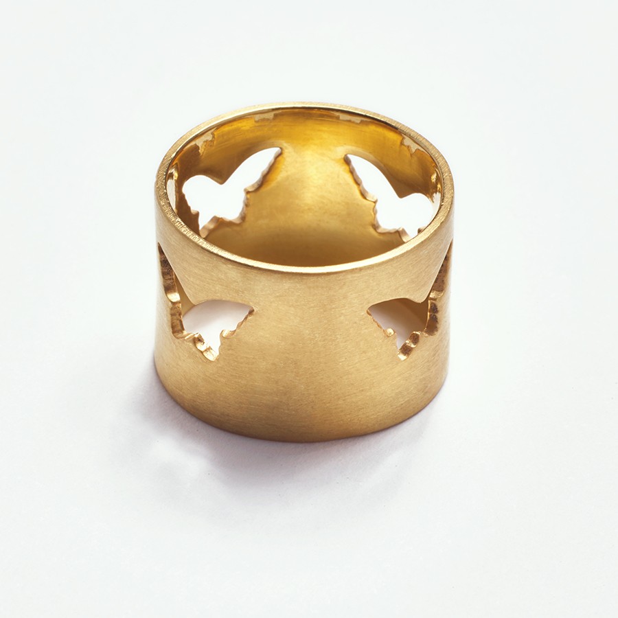 Anel em ouro amarelo fosco. Disponível também em ouro branco.