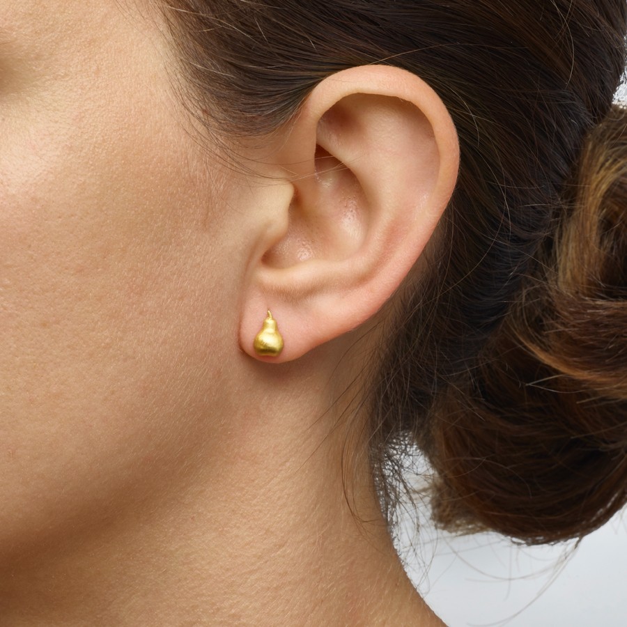 A coleção apresenta a pêra, a uva e a maçã em versões como brincos, colares e pingentes esculpidas em madeira e pintadas à mão, com interferências em ouro amarelo ou branco, ou versões das frutas apenas em ouro.