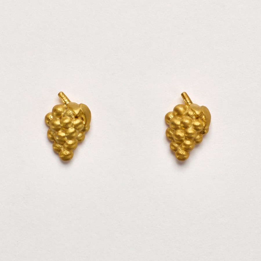 A coleção apresenta a pêra, a uva e a maçã em versões como brincos, colares e pingentes esculpidas em madeira e pintadas à mão, com interferências em ouro amarelo ou branco, ou versões das frutas apenas em ouro.