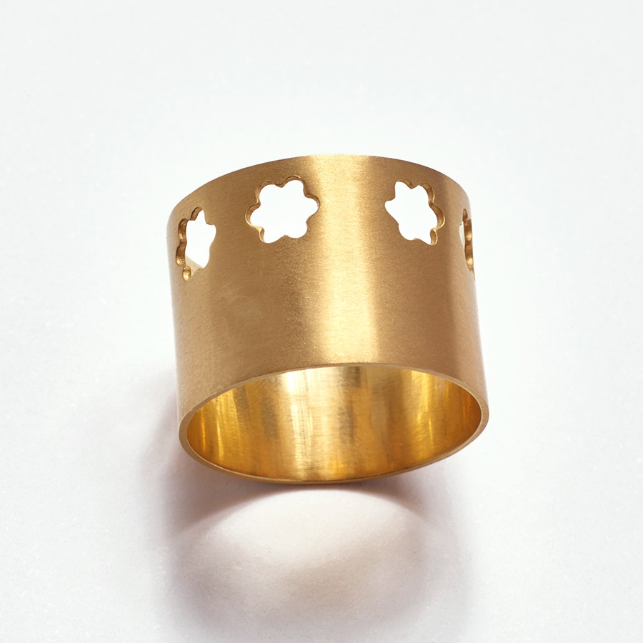 Anel em ouro amarelo fosco. Disponível também em ouro branco fosco.