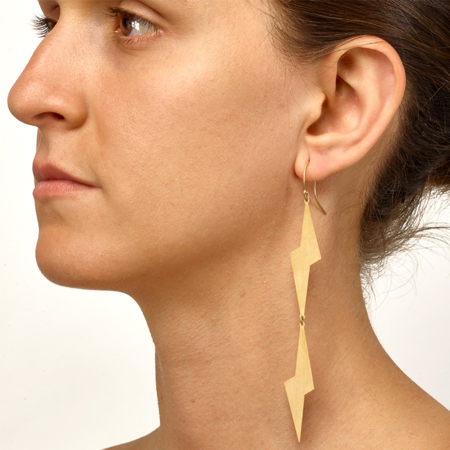 Brinco em ouro amarelo fosco, disponível também em ouro branco.