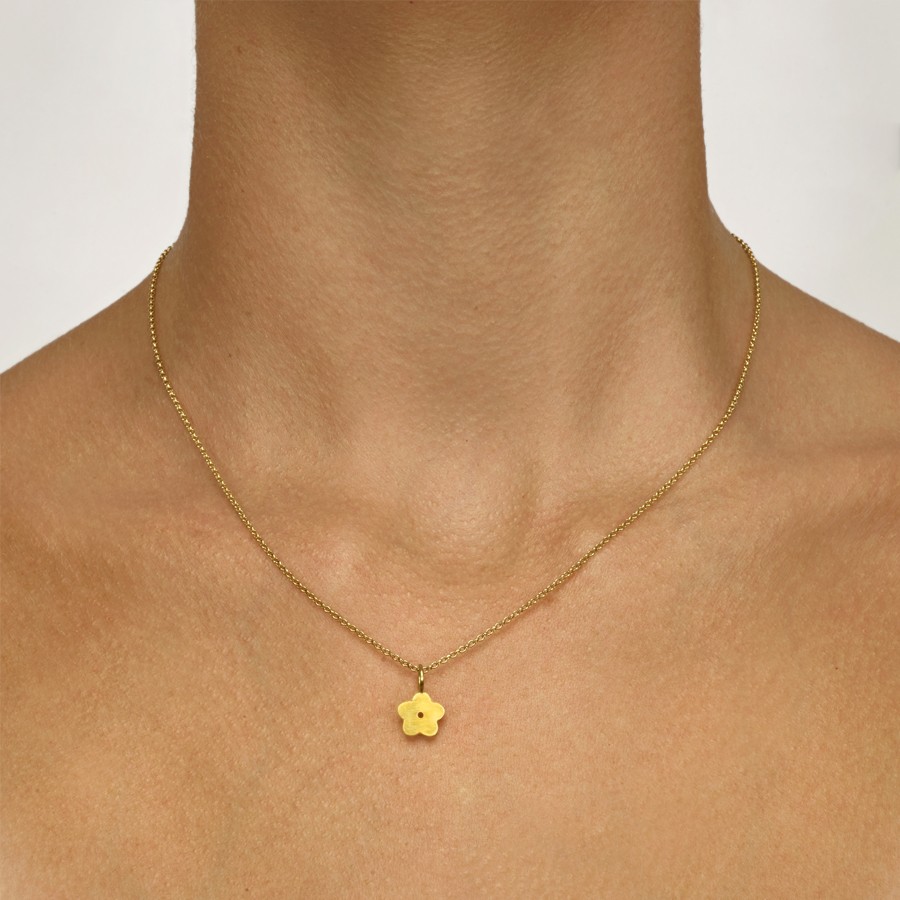 Pingente flor em ouro amarelo fosco. Disponível também em ouro branco.