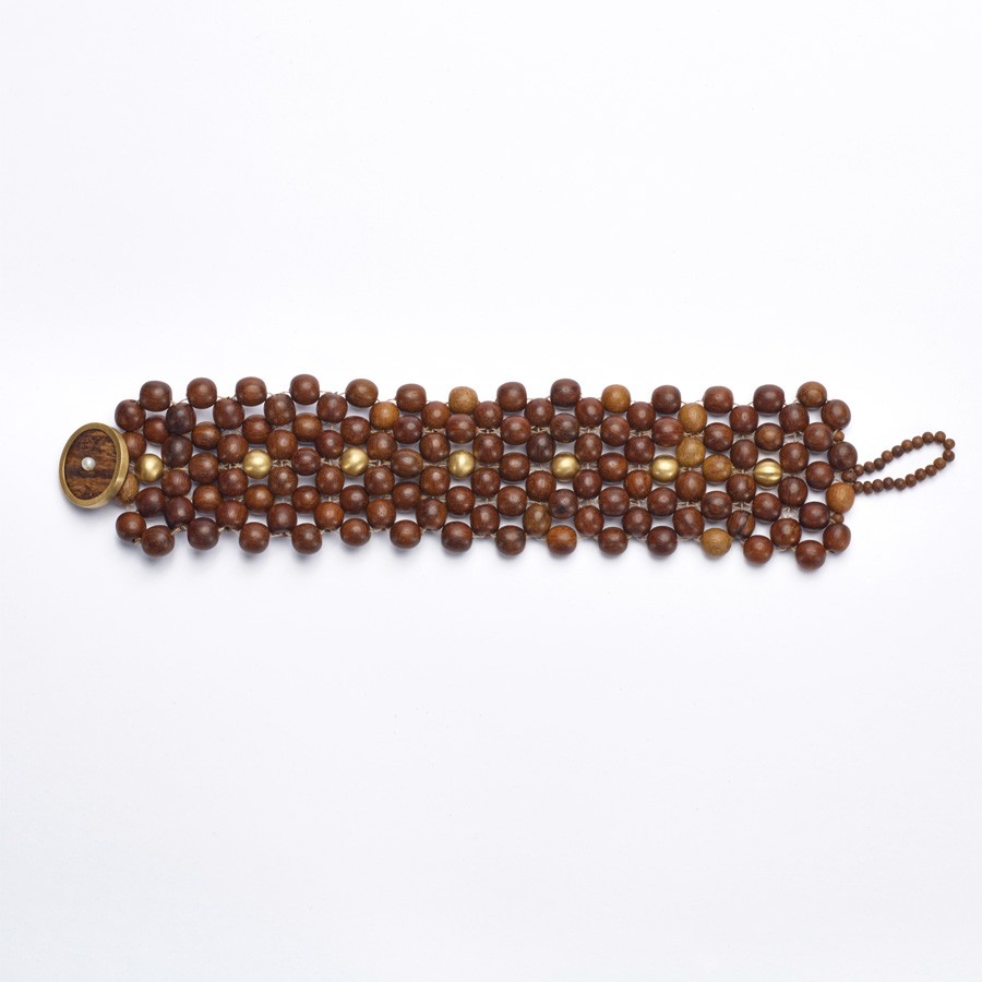 Pulseira confeccionada em ouro amarelo fosco e imbuia.