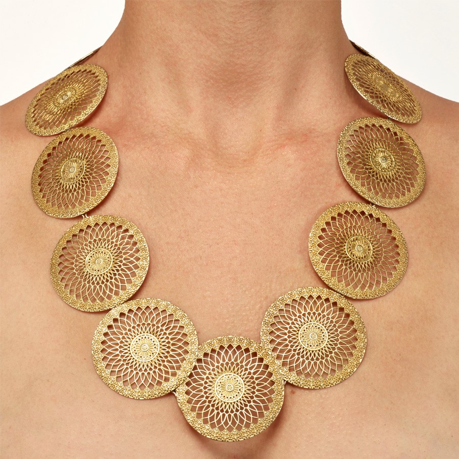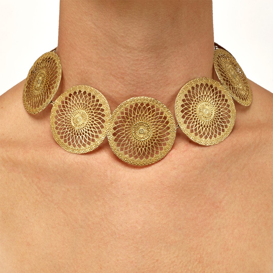 Colar em ouro amarelo fosco, disponível também em ouro branco.